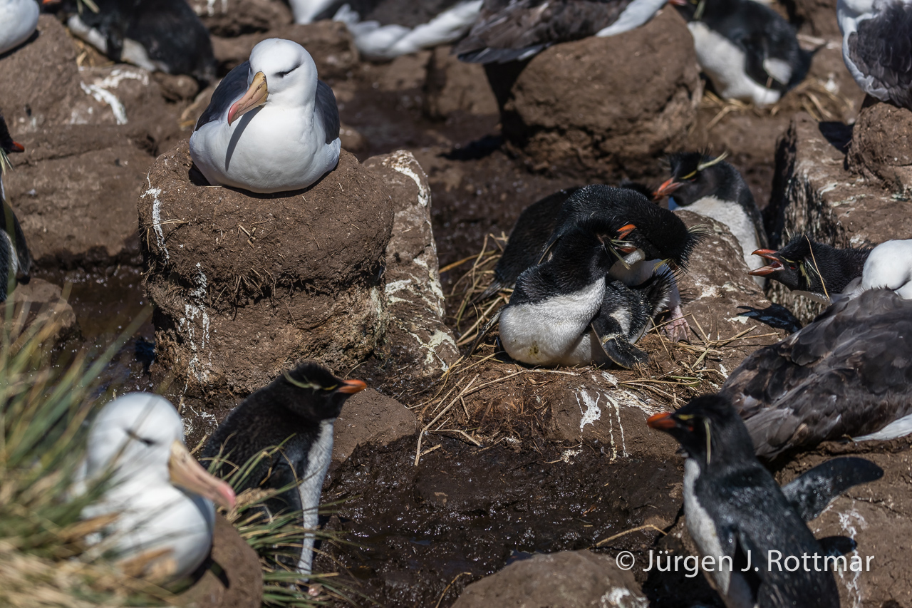 Das Schiff hatte inzwischen die Einreiseformalitäten erledigt und so ging unsere nächste Fahrt Richtung Saunders Island „The Neck“, das wir am folgenden Morgen erreichen sollten. Die kleine Bucht war von den Bedingungen her nicht zu erreichen und der Kapitän entschied sich dann, die Insel zu Umfahren und an der grösseren Bucht einen Versuch zu wagen. Das Expeditions Team prüfte gleich die Anlandung, aber der Wellengang war definitiv zu hoch und das Wetter versprach keine Besserung. Somit war diese Anlandung Geschichte und es ging weiter zur nächsten Insel, West Point. Der Inselbesitzer hatte dann bestätigt, dass wir auch früher kommen dürfen und so hatten wir etwas mehr Zeit auf West Point. Und es hat sich gelohnt. Es ist wiederum ein ganz besonderer Ort mit vielen Vogelarten, die im Unterschied zu Europa eine sehr kleine Fluchtdistanz hatten. Wir konnten mit etwas Geduld ganz Nahe an die verschiedensten Inselbewohner und haben über diesen Zustand fast die Zeit vergessen.