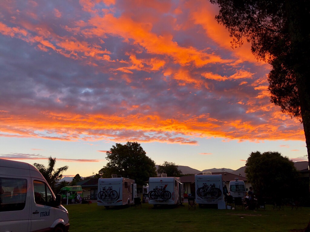 Dieser farbige Himmel veranlasste uns zu reflektieren und zu sinnieren. Wir haben ja bereits die Nordinsel aus unserem Programm gestrichen. Nicht ganz, da wir uns vorgenommen haben, die Nordinsel separat zu erkunden. Klingt gar nicht so blöd, Man(n) sollte Ziele haben! Und die Nordinsel ist definitiv ein Ziel. 😉