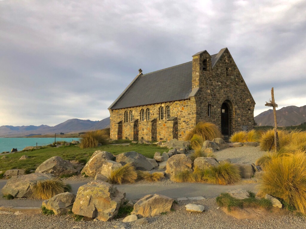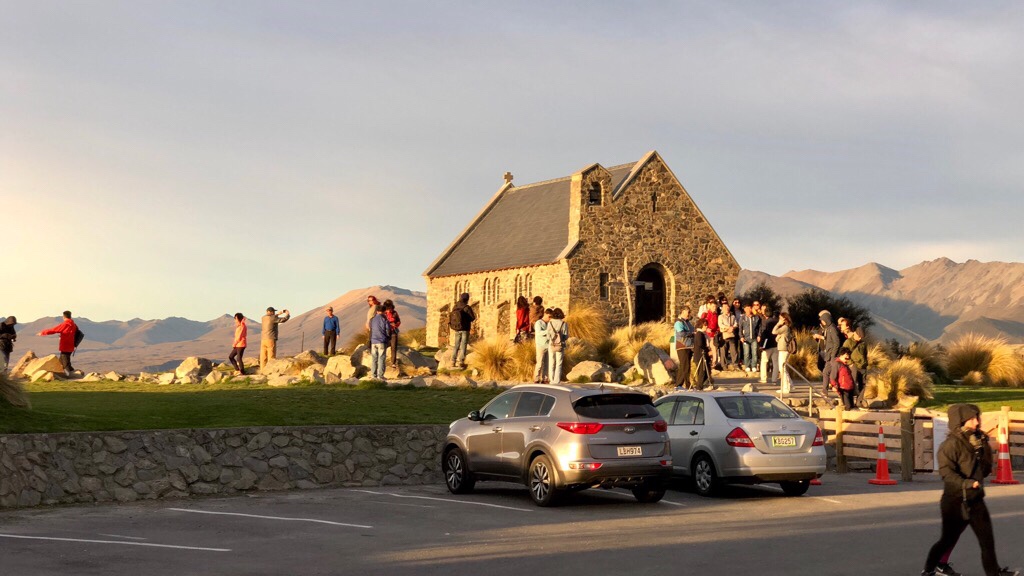 Gegen Abend zurück in Tekapo, wollte Serdar auf „Teufel Komm Raus“ Die Kirche im Abendlicht fotografieren. Abgesehen davon, dass es halt nur eine Kirche ist, zugegebenermassen eine der schöneren, waren mir die Menschenmassen höchst zuwider. Dazu kommt, dass Serdar mir die ganze Zeit in den Ohren lag, dass er die Kirche nicht fotografiere, weil so viele (dumme) Touristen da wären. Alles dummes Zeugs von gestern. Als Serdar die Wolken mit dem entsprechenden Licht sah, war er nicht mehr zu halten. Ich verkroch mich in den Camper, aber immer mal wieder musste ich einen Blick riskieren.