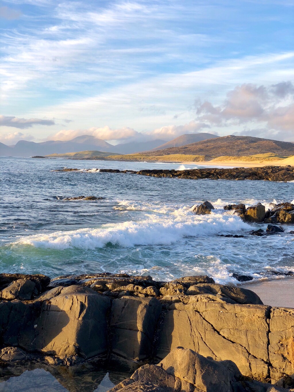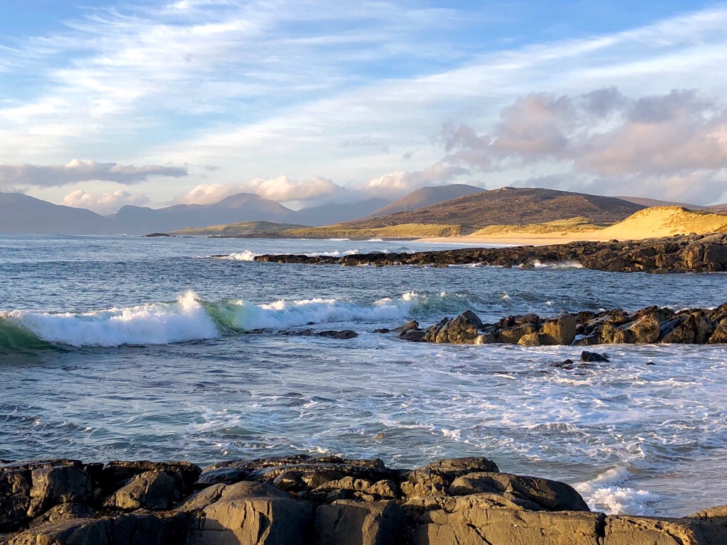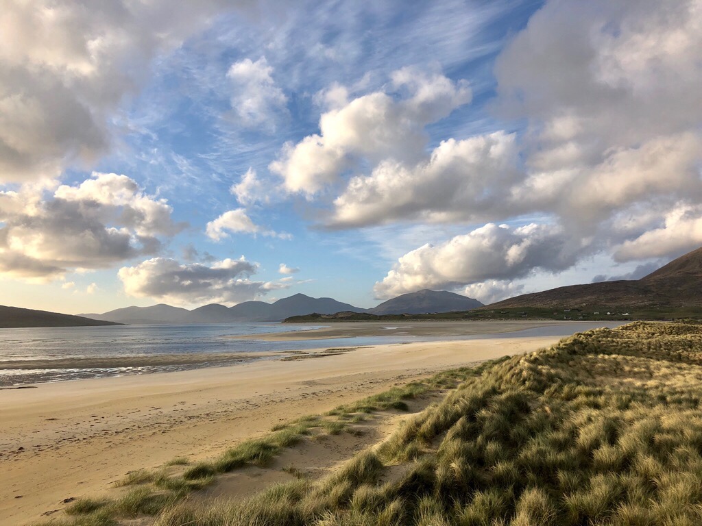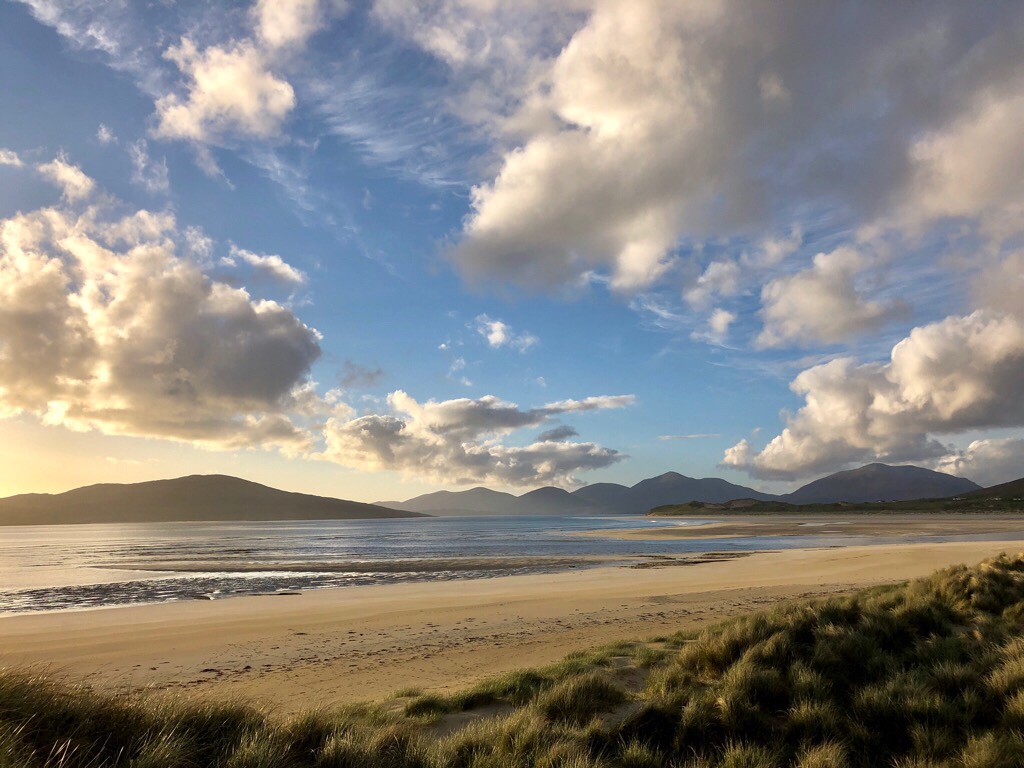 Doch bevor wir ankamen, machten wir noch einen Stopp an einem wunderbaren Strand, der „Seilebost Feilte Air Beach“, mit einem Wolkenhimmel wie aus dem Märchenbuch.